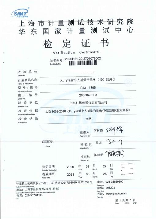累積劑量范圍 0μSv~999.99Sv 工作環(huán)境 溫度范圍 -40℃~+50℃;濕度范圍: 0~98%R.H